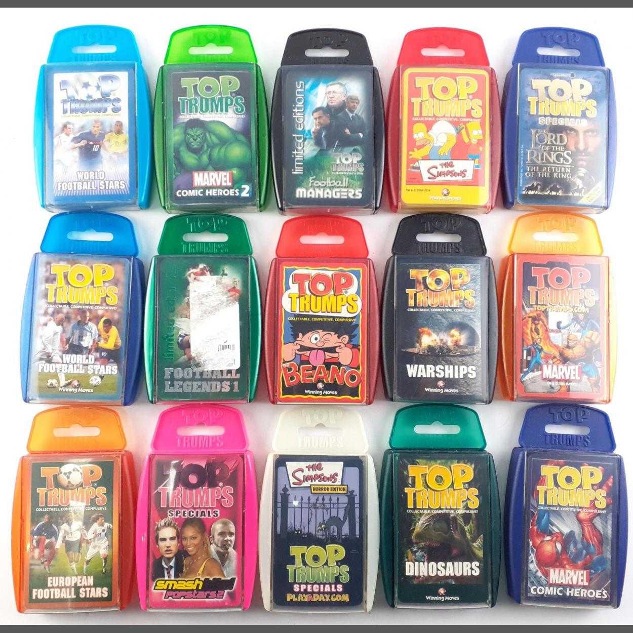 TOP TRUMPS Early 2000 sets to include Simpsons, Dinosaurs, Warships, Football Managers, Marvel Comic Heroes, World Football Stars and more!. 15 sets in total.
