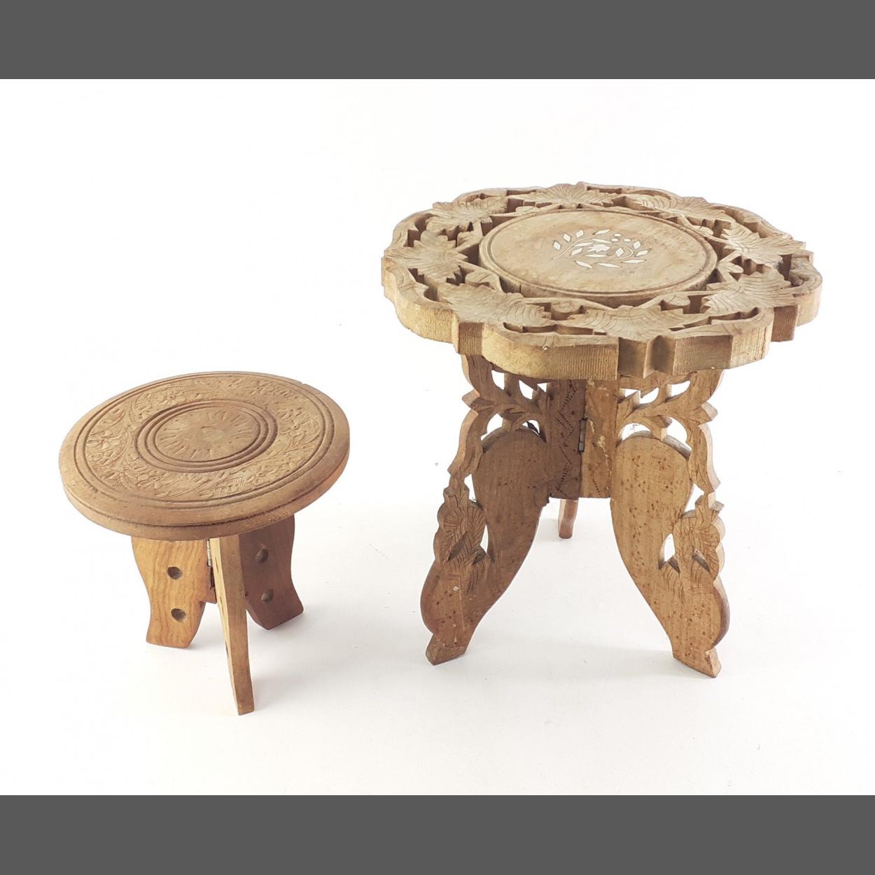Two small Indian tables nice decorative small pieces handy for a dressing table top. The tallest only 18cm