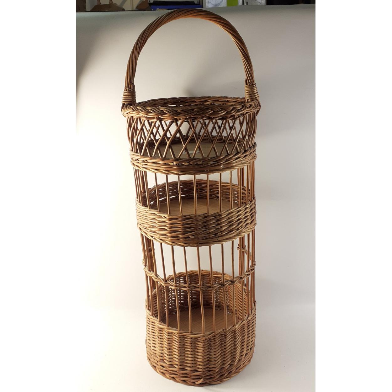 Handy for drinks in the garden - this three level wicker basket allows safe carriage from kitchen to garden, stands approx 85cm tall, diameter 28cm