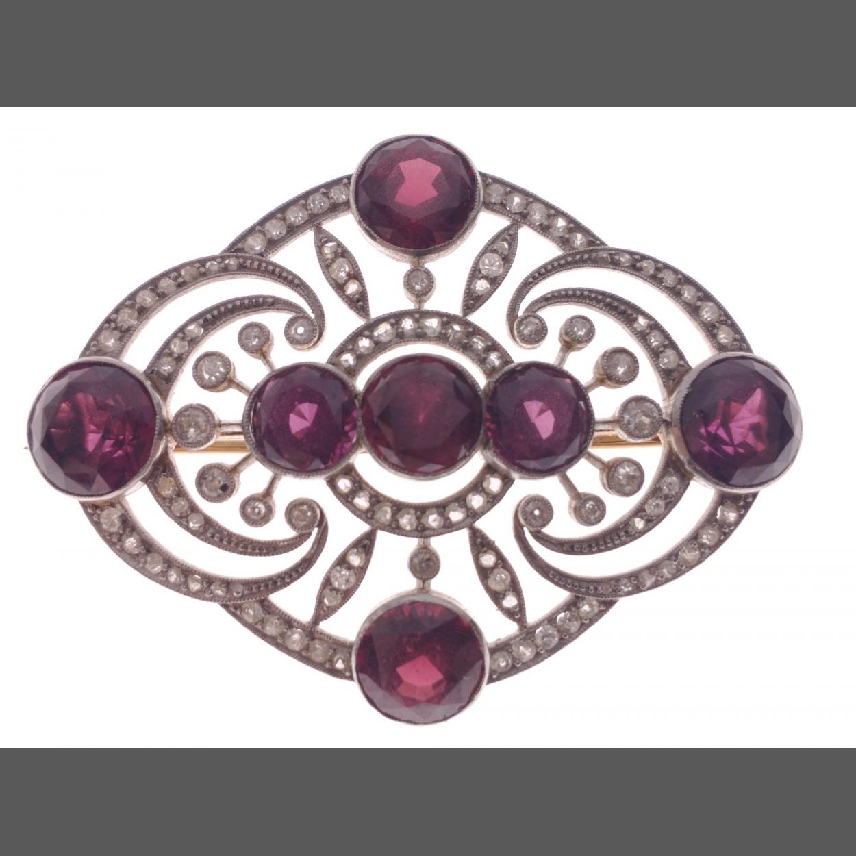 A small VINTAGE 'yellow metal' 25 diamond surround and large orange tinged square-cut stone pin BROOCH of THE HIGHEST QUALITY 1.5cm diameter, gross weight 4.86g