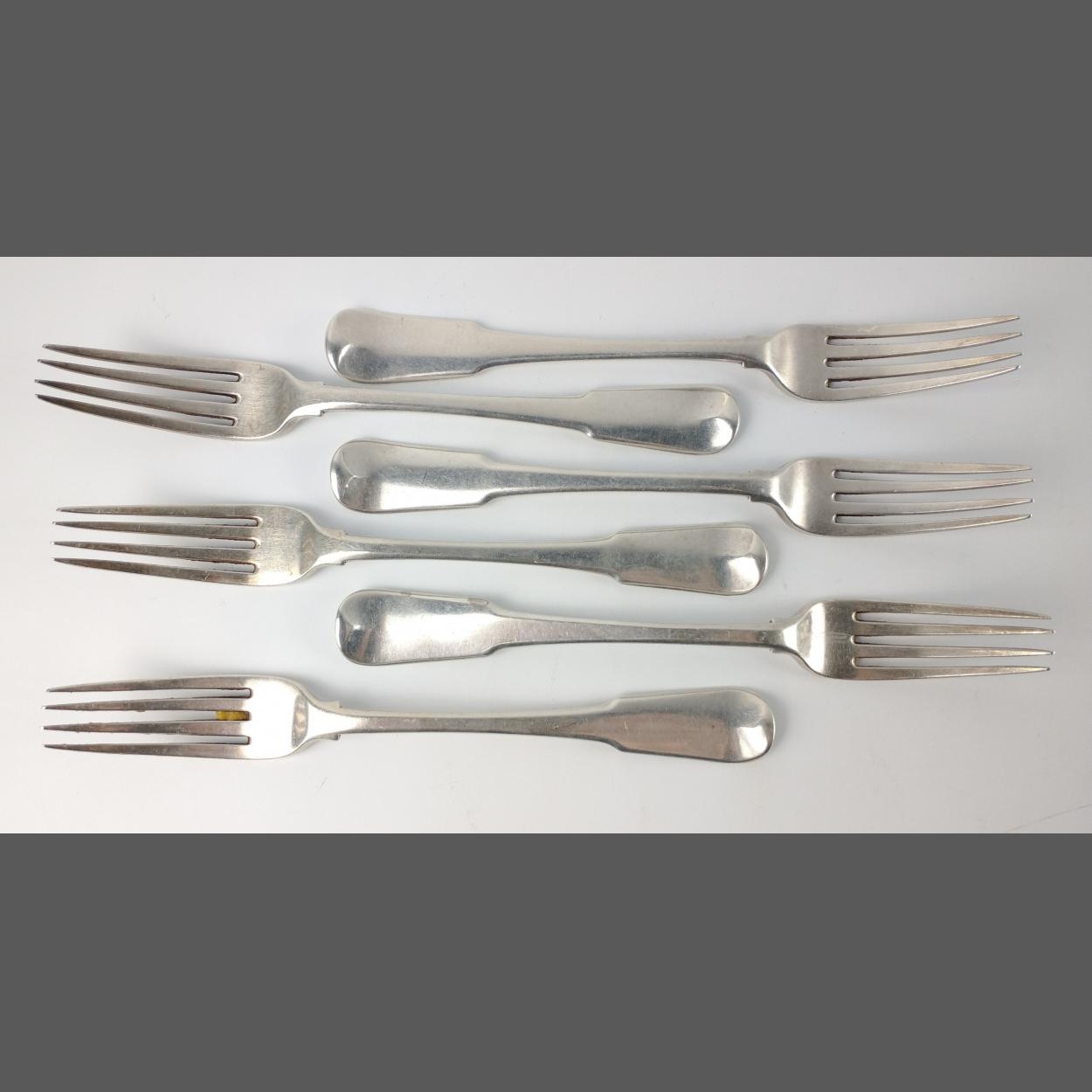 Six London silver hallmarked 1821 FORKS maker's mark indistinct length 16.5cm, gross weight 235g,