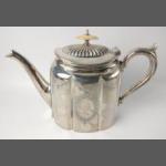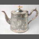A late c19th century highly decorative EP TEAPOT with bone finial, stamped 10742 to the base, dimensions 13cm x 16cm x 12.5cm approx, 676g approx weight