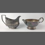 Two pieces of London hallmarked silver to include a small SAUCEBOAT 1809, maker unclear, 13 x 6cm, gross weight 65g, the other a SALT, marks unclear but possibly by HENRY CORRY1753, 16cm diameter, gross weight 52g.