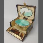 A charming Birmingham silver hallmarked 1902, silversmith F.G.R. BRUSH with turquoise enamelled top with a small silver-topped COMB all enclosed in a fitted box with MIRROR set inside (10.5cm x 7.5cm x 5.5cm)