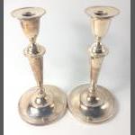 A pair of old Sheffield plate BOULTON M & CO CANDLESTICKS, base diameter 13.5cm, height 26cm approx, the candlesticks are both stamped with two marks side by side, gross weight 1700g