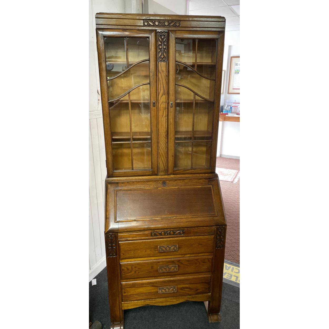 C1920/30's Bureau book case with glazed doors over bureau abd three drawers 194cm height x 72cm width x 43cm depth approx - overall in nice condition