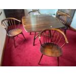 An ERCOL dining table complete with ERCOL tag dimensions 135cm x 112cm and four ERCOL style round backed chairs