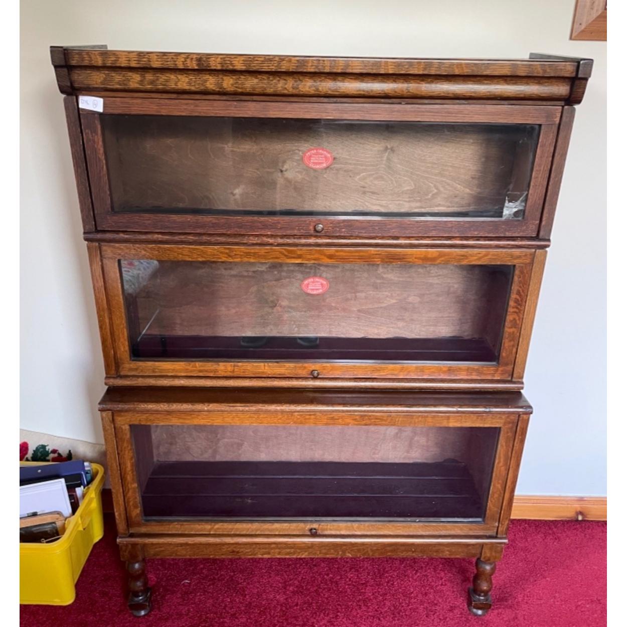 A nice set of three legal book cases - top pane of glass has been cracked at the corner but still attached - dimensions 86cm x 120cm tall x 30cm at the widest point