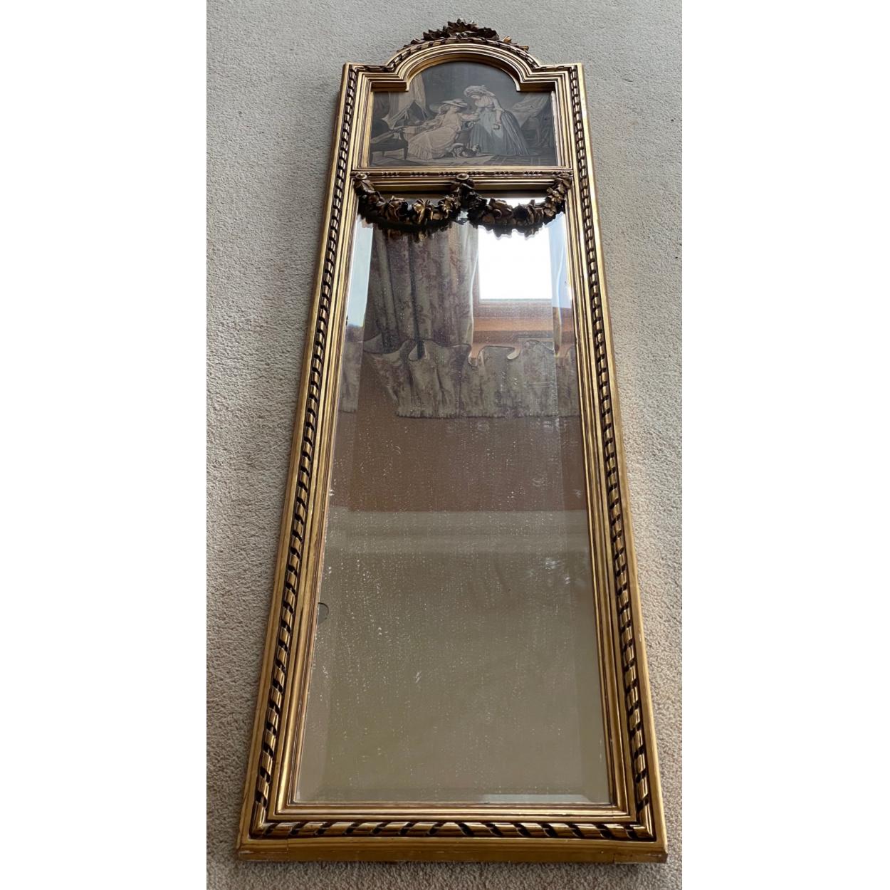A nice ANTIQUE long wall MIRROR with gilded frame and a picture panel atop 152vm x 40cm