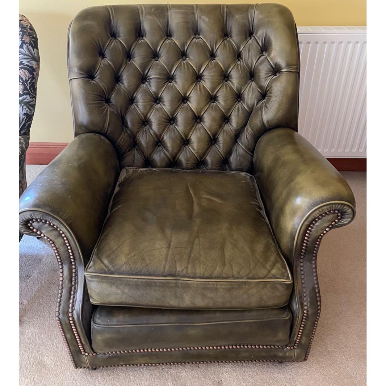 A nice green leather style deep buttoned ARMCHAIR with studs