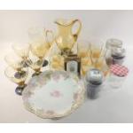 A mixed lot of glassware to include a smoky glass jug and glasses, Kilner jar and others