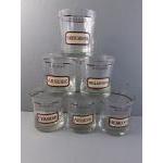 A set of six large tumblers - Name Your Poison, with measurements on their sides