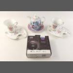 A mixed lot to include REGAL SPENCER tea bowl, teapot and saucer. Two LEONARDO 'onesie' cups and plates. A personal CD Player. All ceramic pieces in good order.