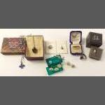 Small jewellery lot, to include smoky quartz pendant on silver chain, an 835 chain with a clover pendant, assorted studs etc. and a boxed 925 ring in Edinburgh Jeweller's box, and one other silver ring with purple stone