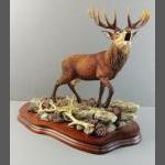 BORDER FINE ARTS Made in Scotland BO220 Highland Majesty by R. Roberts. Magnificent large model of a Stag in full bellow. 32cm across and stands 30cm tall on plinth. Impressive model with only 1 broken branch noted