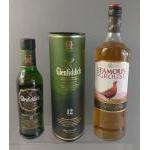 A 35cl bottle of GLENFIDDICH in a triangular tin plus a 1 litre bottle of THE FAMOUS GROUSE