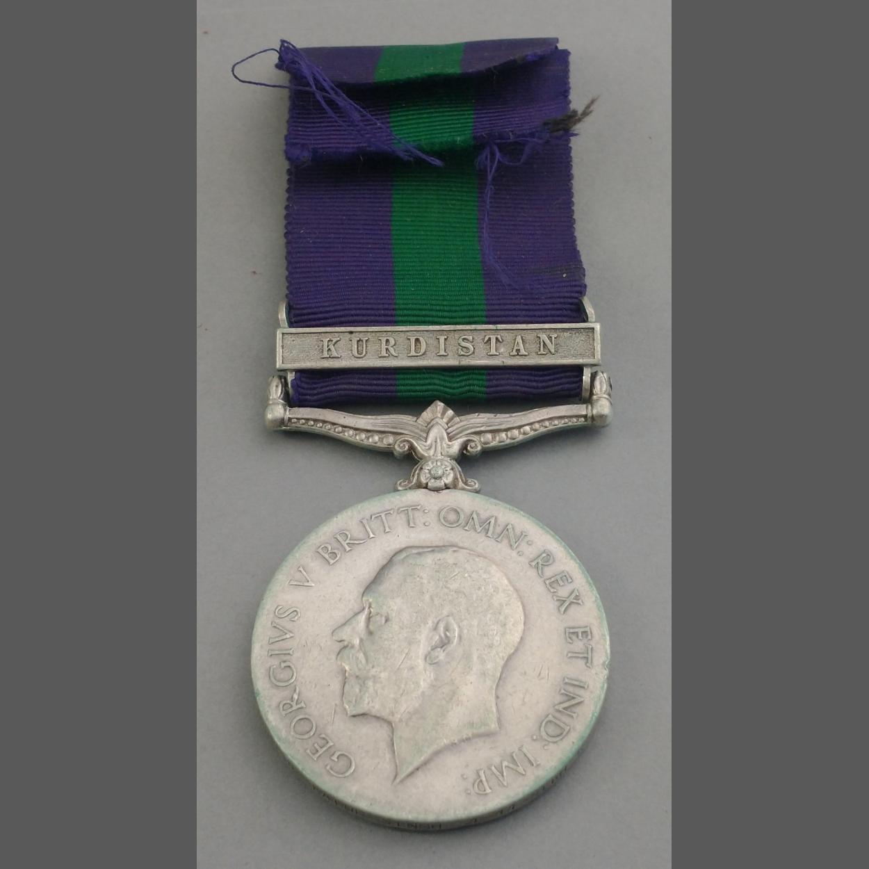 GEORGE V GSM General Service Medal with Kurdistan bar awarded to 28HVLDR Kapur Singh 1-11 SIKH REGIMENT