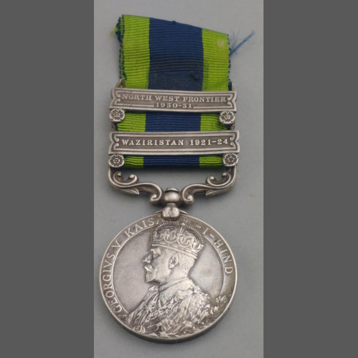 GEORGE V India General Service medal with clasps for Waziristan 1921-24 and North West Frontier 1930-31, awarded to 3787 Sepoy Mohd. Azam 2-9 JATR
