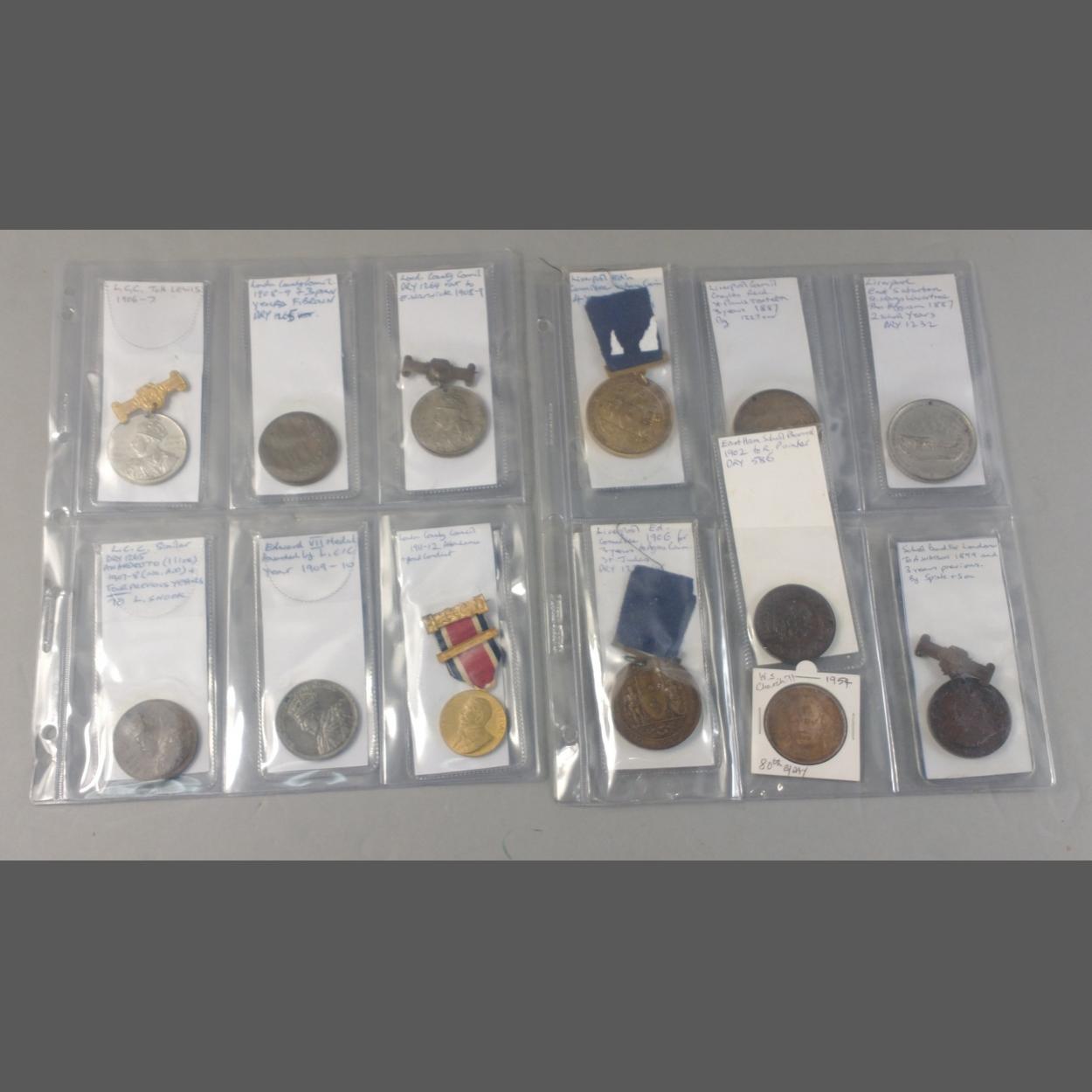 A quantity of 12 early 1900's school medals mainly for attendance and general good conduct mostly named. Some London, some Edinburgh. An interesting collection.