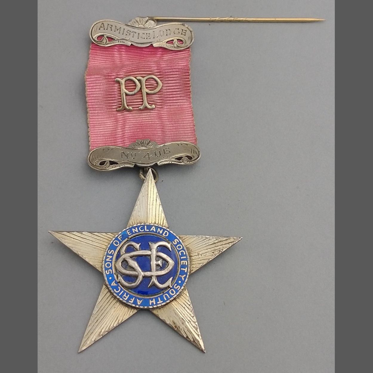 MASONIC silver hallmarked medal Armistice Lodge No. 406 South Africa Sons of England Society presented to Wor. Bro. A.A. Hoadley W President for services rendered 1923