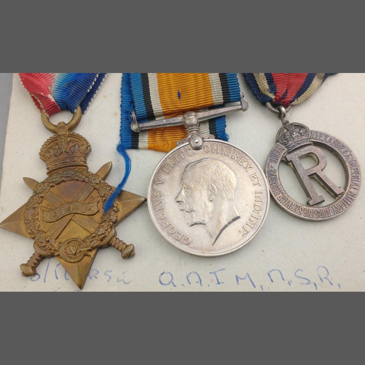 WWI medal group Q.A.I.M.N.S.R. awarded to S/Nurse I.T. Grant, comprising 1914-15 Star, British War Medal and Queen Alexandra's Imperial Military Nursing Service Reserve Silver Medal