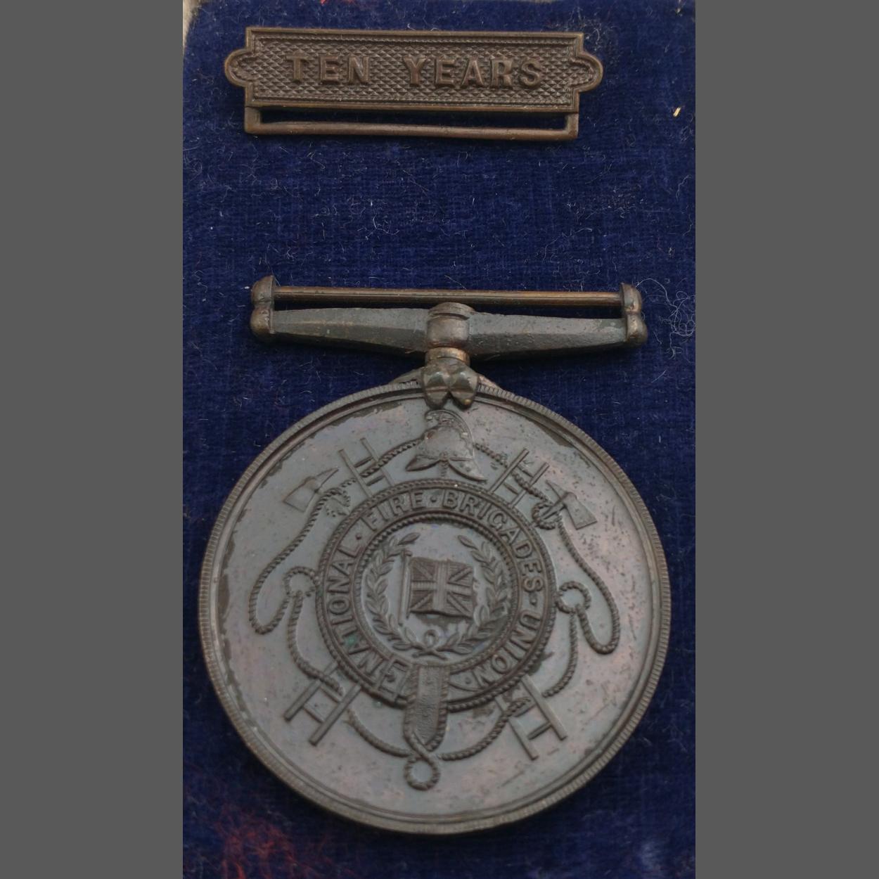 GEORGE V National Fire Brigade Union Long Service Medal presented to J.J. Garfield of the Folkestone Fire Brigade dated 1919