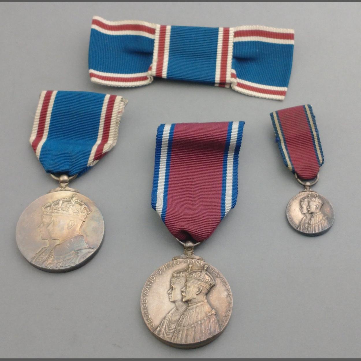 A box containing two 1937 Coronation Medals, a miniature and bow