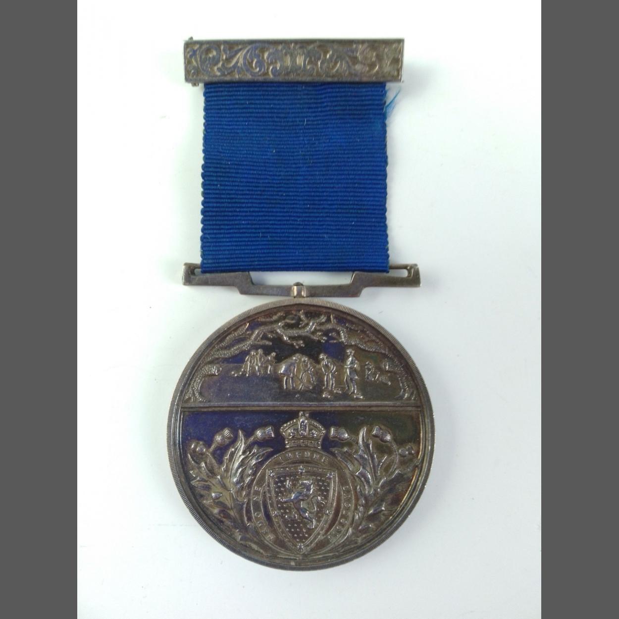 A Scottish curling medal Royal Caledonian Curling Club on ribbon, ready for wear. 4cm approx. Gross weight 44.3g approx