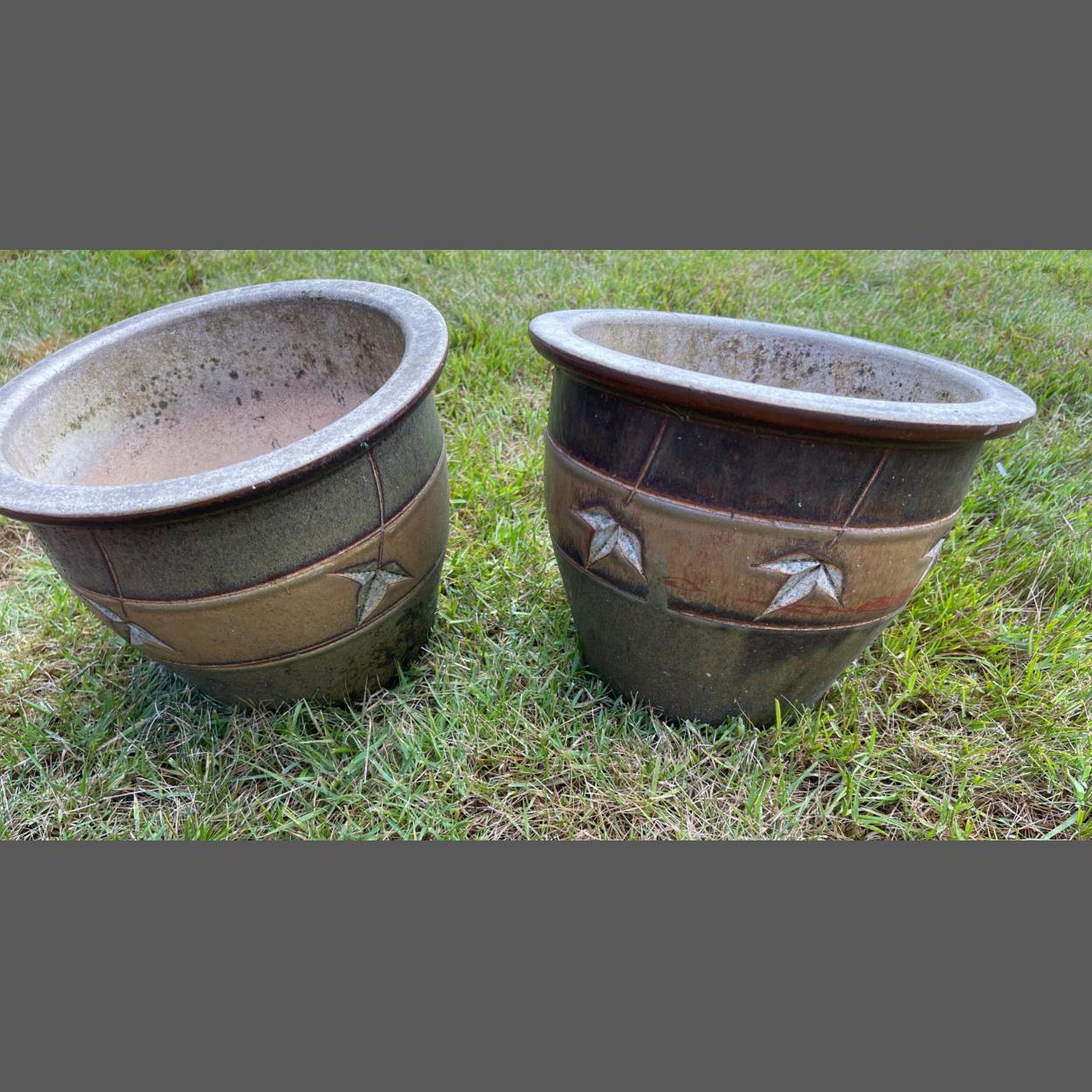 GOOD QUALITY! Two similar ceramic med sized GARDEN PLANTERS