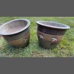 Two medium and smaller sized 'WITCHES CAULDRONS' in cast iron c. late 19th century - would make ideal planters for the garden - larger dimensions 24cm height 28cm approx