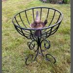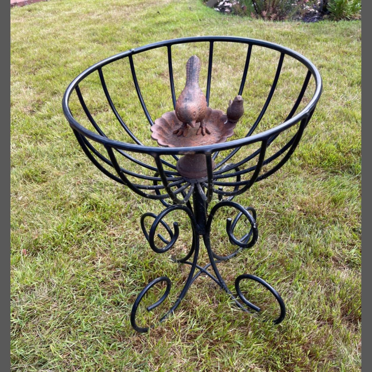 A garden ornamental planter, plastic coated, can be used indoor or outdoor - comes with a metal ornamental bird and a bird tray etc - dimensions 1ft height x 1ft diameter
