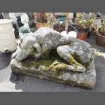 A large stone effect garden sitting dog statue / great patina, looks like a lurcher? - size 2.65ft long x 1.5ft height aporox - weighs a tonne!!