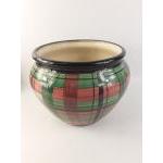 A hand-decorated tartan design plant holder from Portugal, stands approx 20cm high