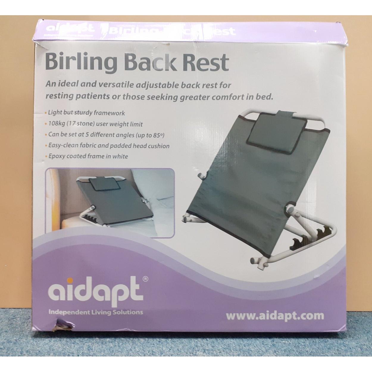 An AIDAPT "Birling Back Rest - An ideal and versatile adjustable back rest for resting patients or those seeking greater comfort in bed." Colour grey. Dimensions 54cm x 56cm x 10cm. Net weight is 2.45kg. In good condition.
