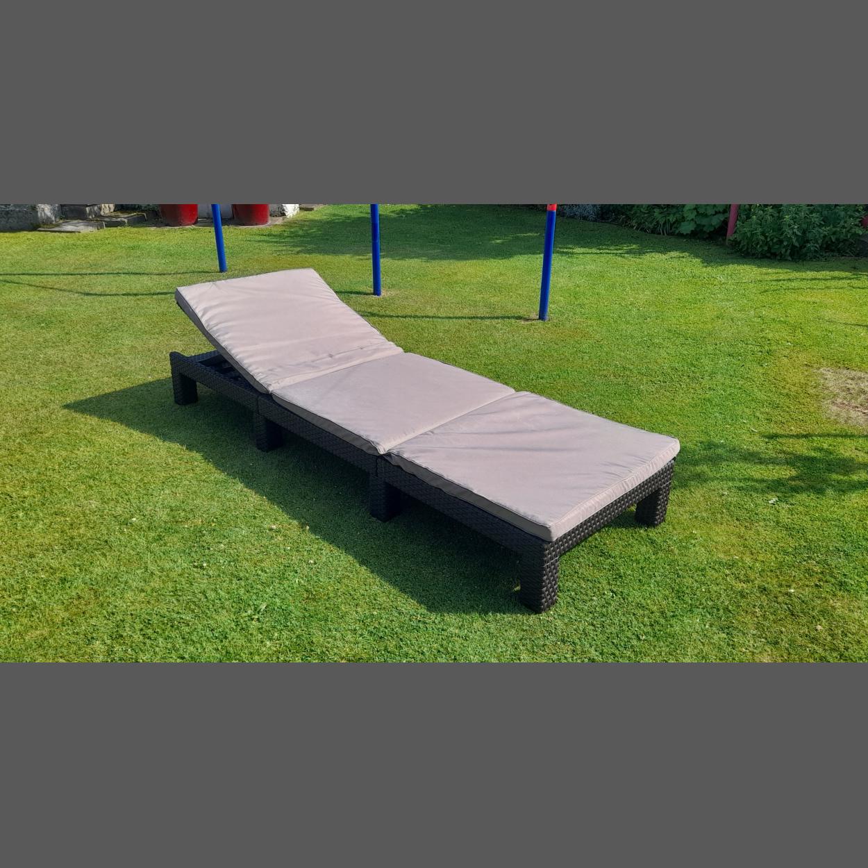 A folding garden lounger chair in good condition.