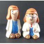 Three stoneware figures, each 10cm approx. Some damage noted.