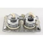 Three novelty Czechoslovakian lustre condiment sets comprising rabbits, owls, and a ship. All in nice clean undamaged condition.