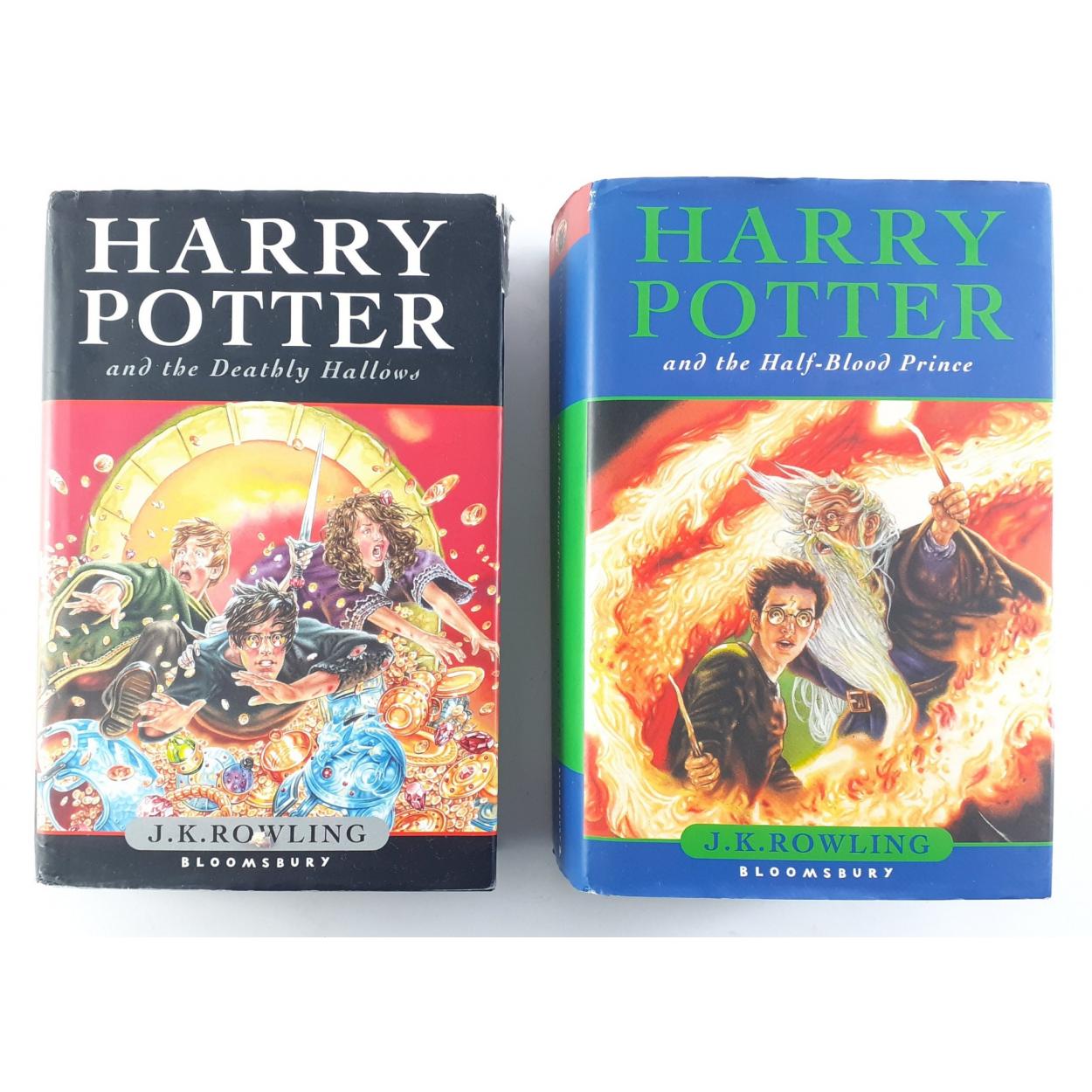 HARRY POTTER and the Half Blood Price (first edition) and HARRY POTTER and the Deathly Hallows (first edition). Minor chips and light wear to dust jackets.