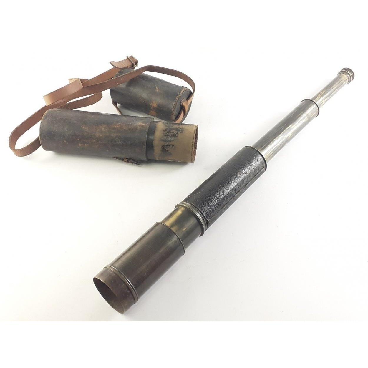 A three draw ROSS OF LONDON cased telescope (No. 24638). With leather case. Lenses appear in good clean condition