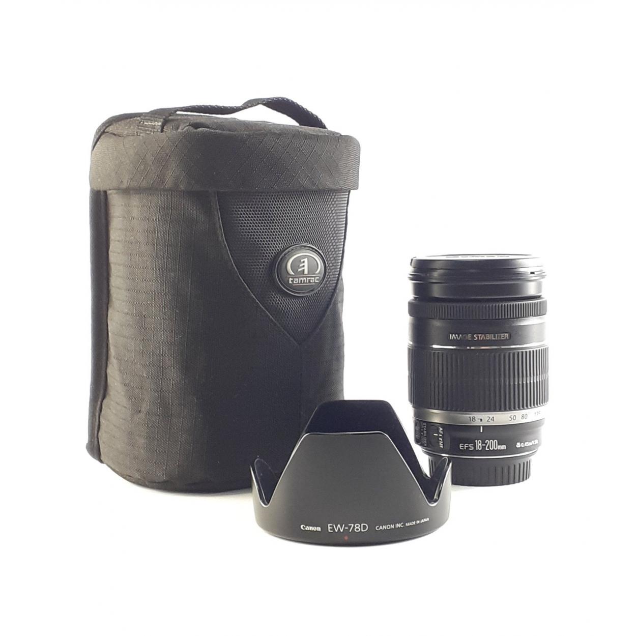 A CANON EF-S 18-200mm f/3.5-5.6 lens in case. No dust