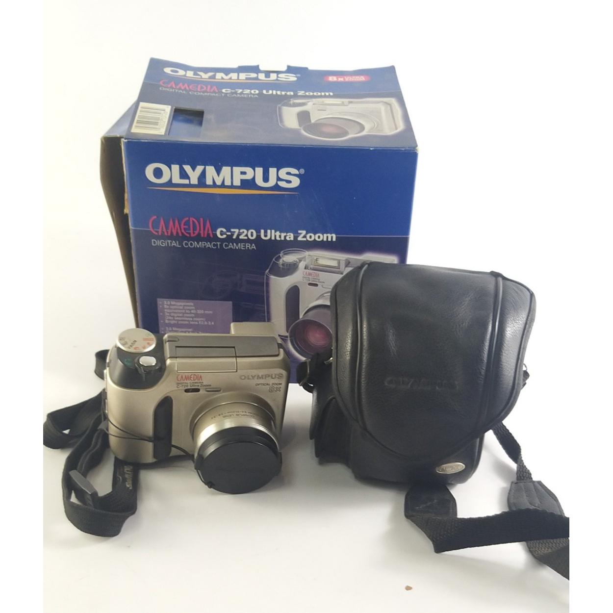 OLYMPUS C-720 Ultra Zoom digital camera in box with paperwork. Untested but battery terminals clean etc.