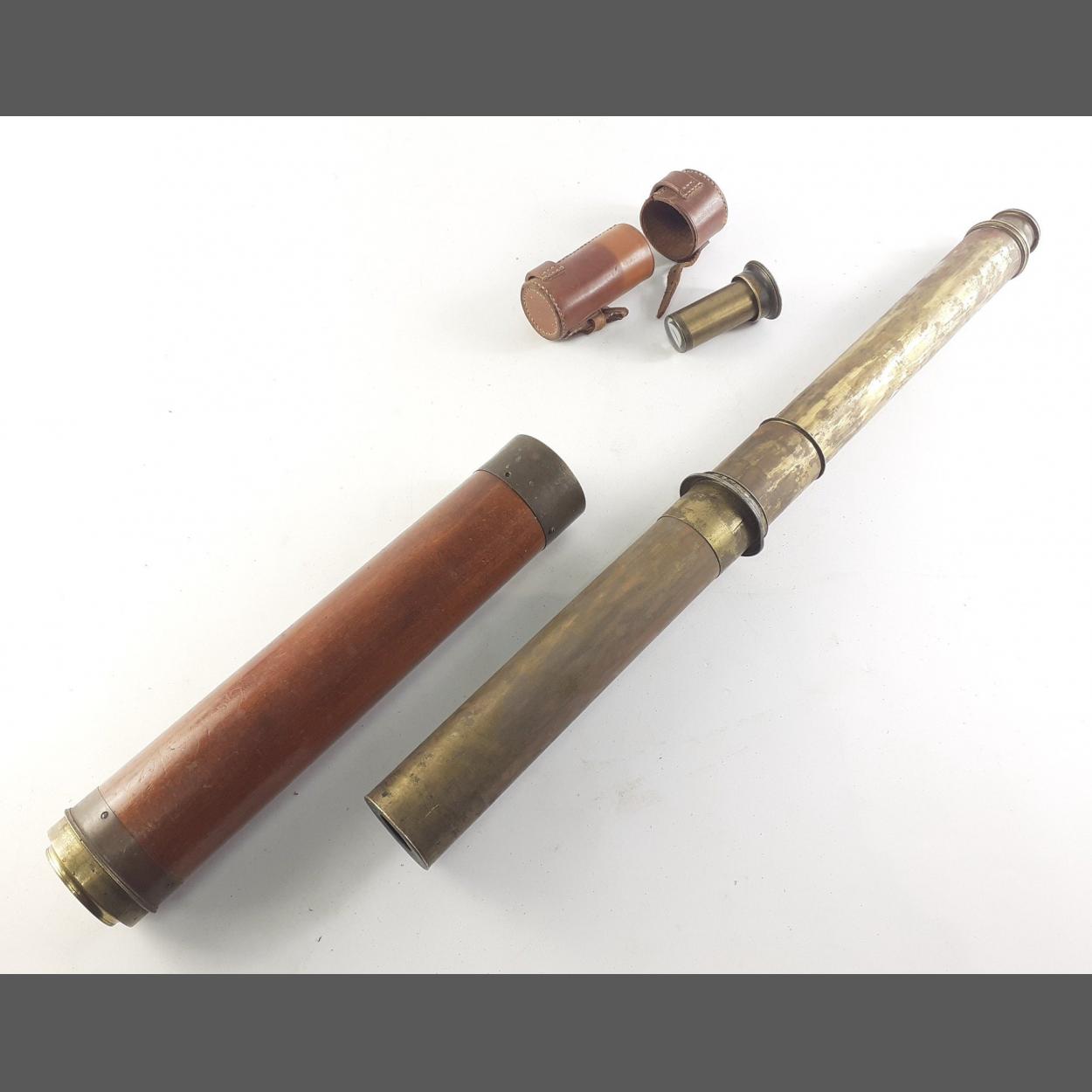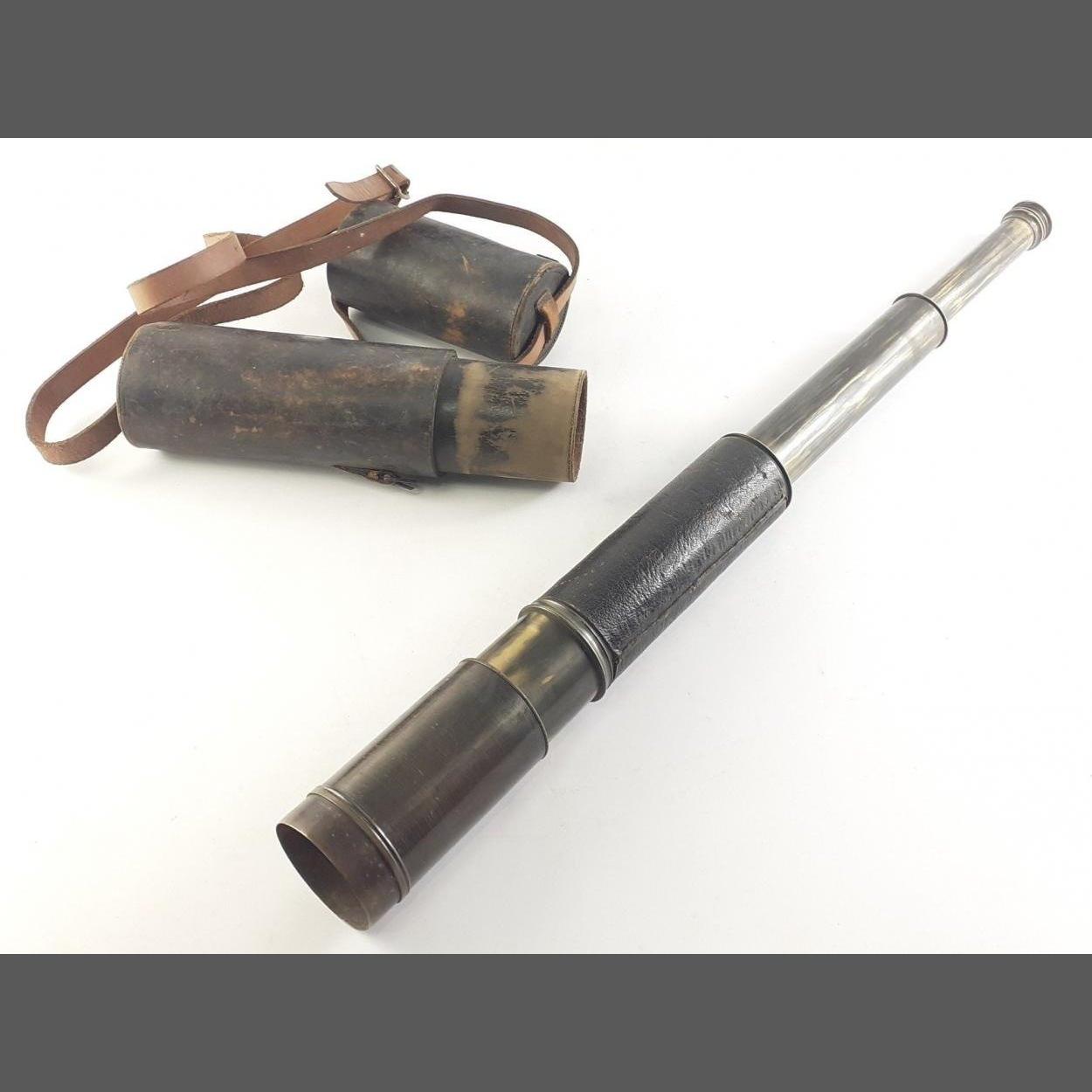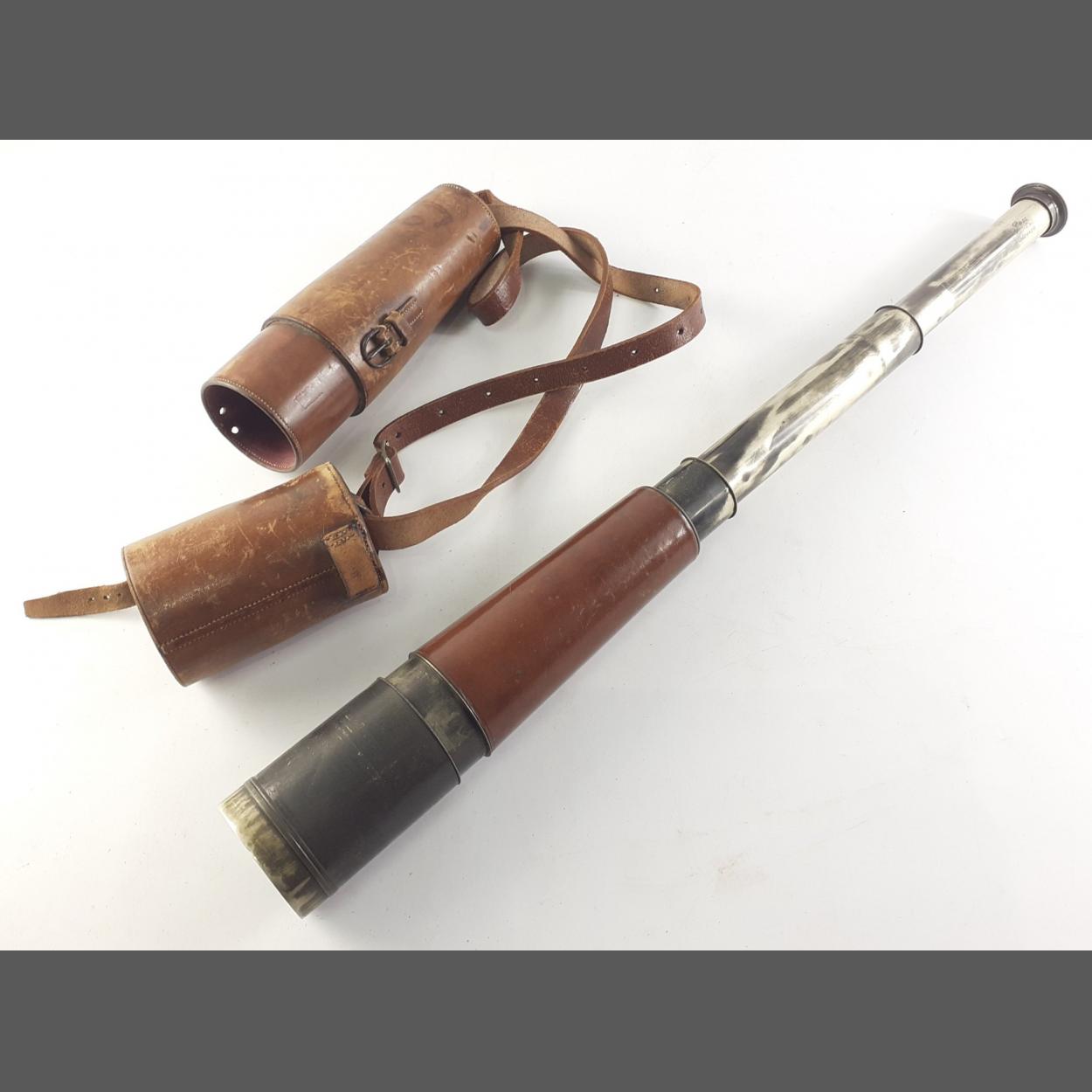 A three draw ROSS OF LONDON cased telescope (No. 24638). With leather case. Lenses appear in good clean condition