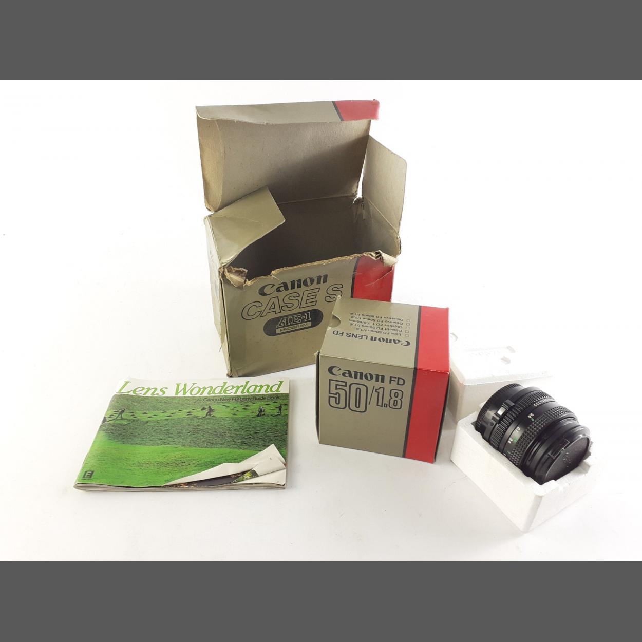 CANON FD 50mm 1:1.8 Japanese made lens. Boxed in case and well stored. Internally clean, no bloom etc.