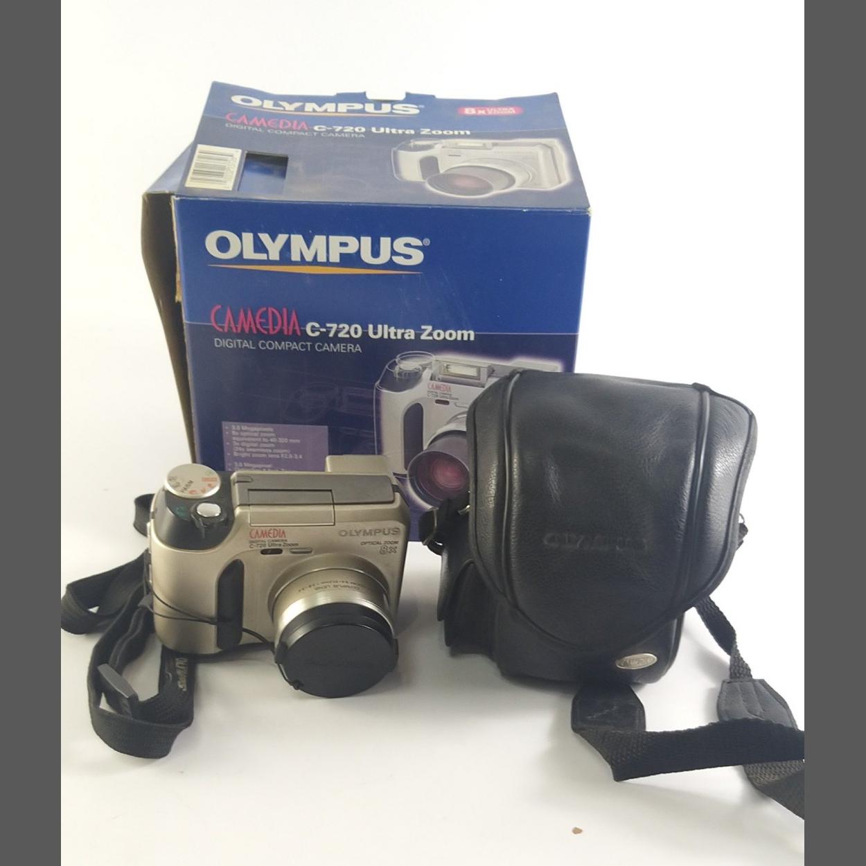 OLYMPUS C-720 Ultra Zoom digital camera in box with paperwork. Untested but battery terminals clean etc.