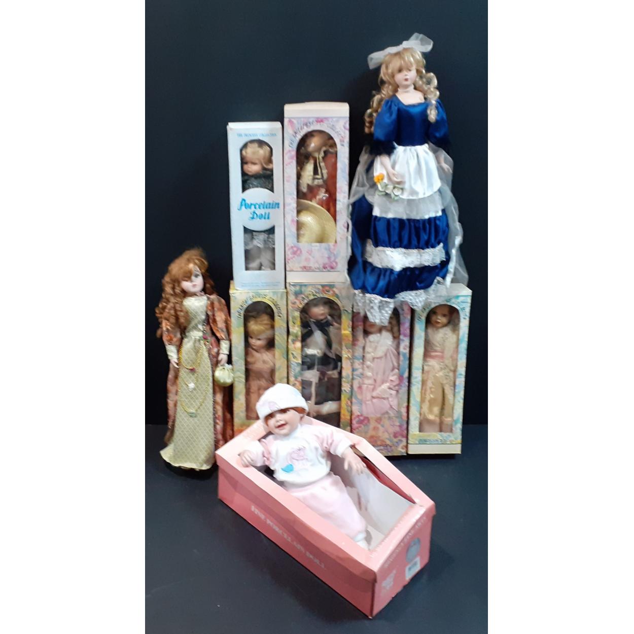 A collection of modern dolls, seven in boxes and two loose dolls. Knightsbridge collection. The tallest stands 57cm approx