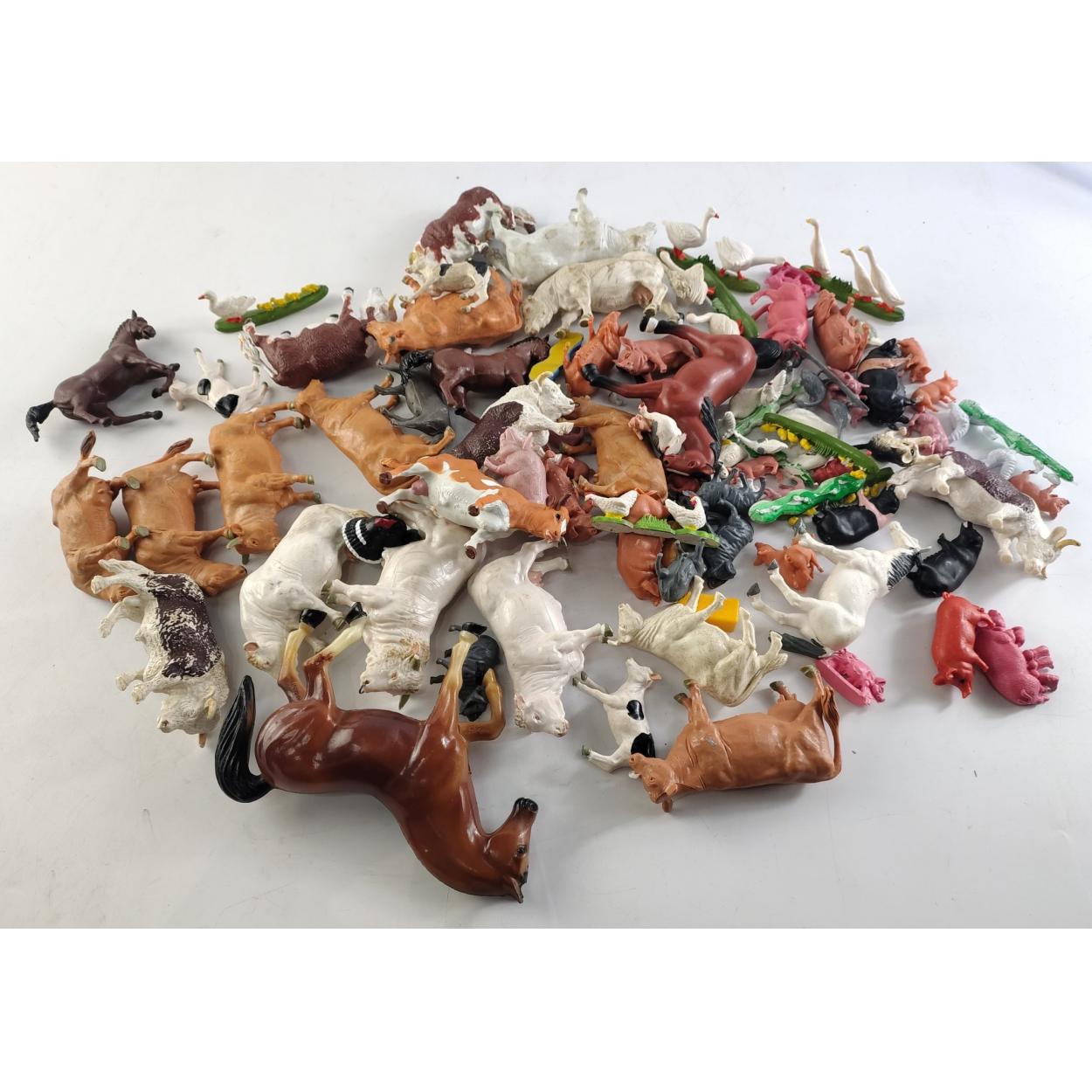 A great quantity of mainly BRITAINS Farmyard animals. A large flock of sheep with some others. In good playworn condition.