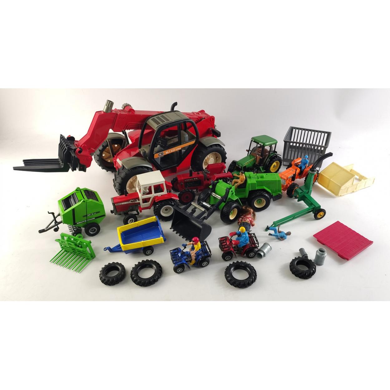 Super lot of BRITAINS diecast farm machinery. Tractors, Bailer, Rake etc. Includes a large plastic MANITOU (not Britains).