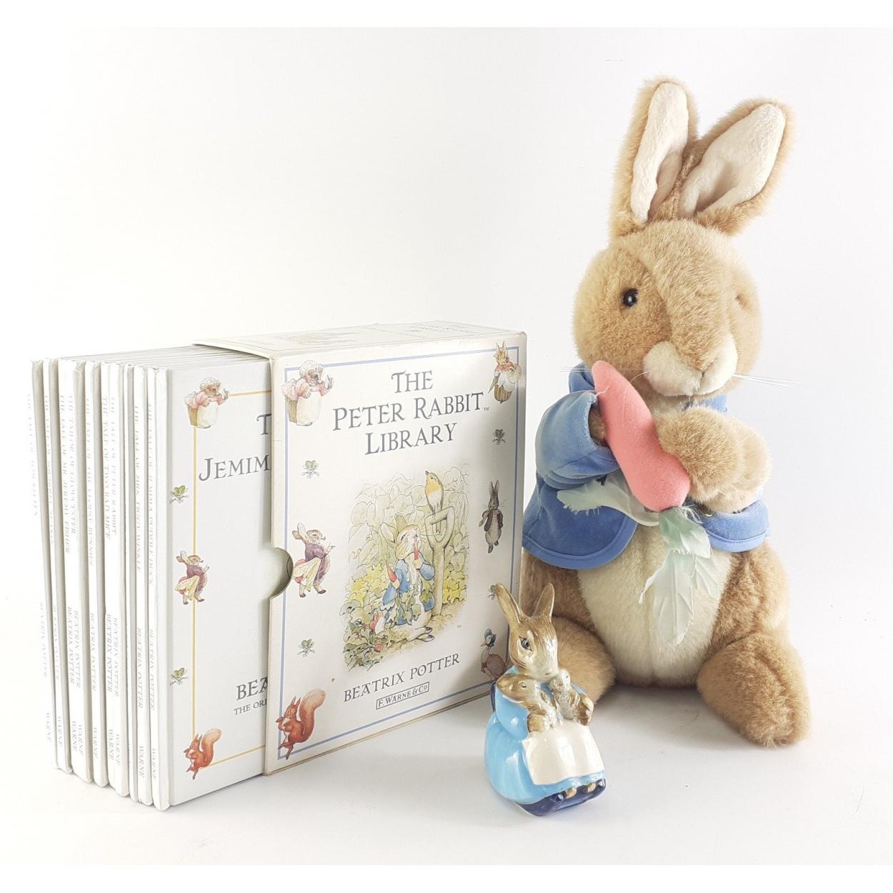 BEATRIX POTTER boxed set of books THE PETER RABBIT COLLECTION and a EDEN bunny with a ROYAL ALBERT Mrs Rabbit & Bunnies.