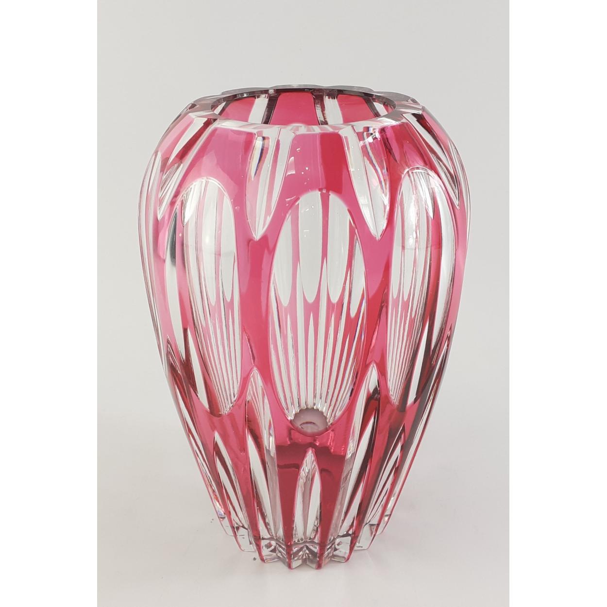 A lovely heavy cut glass vase with cranberry tone. Stands 21cm and in lovely condition with no chips or cracks.