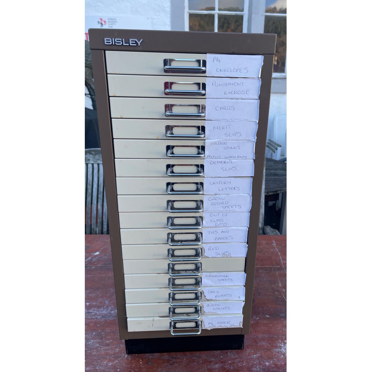 Peebles High School fund raising - A BISLEY 16 drawer low level filing cabinet - 3.5ft high approx